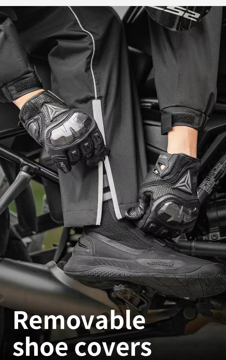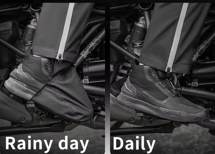 Tương tự như các phiên bản Áo Mưa Bộ Motowolf MDL 0403B, 0402B, RC1 thì RC4 cũng được tích hợp phần ủng chống nước cho giày khi đi mưa. Tuy nhiên, với phiên bản lần này. Phần bọc giày RC4 có tháo ra và gắn lại dễ dàng. Thao tác đơn giản, dễ sử dụng. Thiết kế này tuy không quá nổi bật, nhưng lại được đánh giá là cực kì tiện lợi. Vì đã khắc phục được tình trạng khó mặc khi đã mang giày trước đó như phiên bản 0403B.