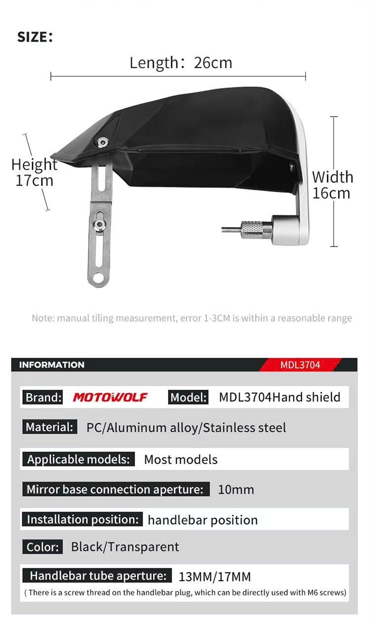 Thông số kỹ thuật phụ kiện Bảo Vệ Tay Lái Motowolf MDL 3704C.