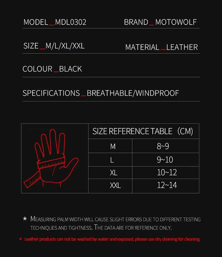 Găng tay Motowolf MDL 0302 được sản xuất với vật liệu 100% chính là Da cừu và đệm bảo vệ PVC. Đây là sản phẩm được đánh giá khá cao tại các thị trường châu Á khác về khả năng bền bỉ và bảo vệ siêu tốt.